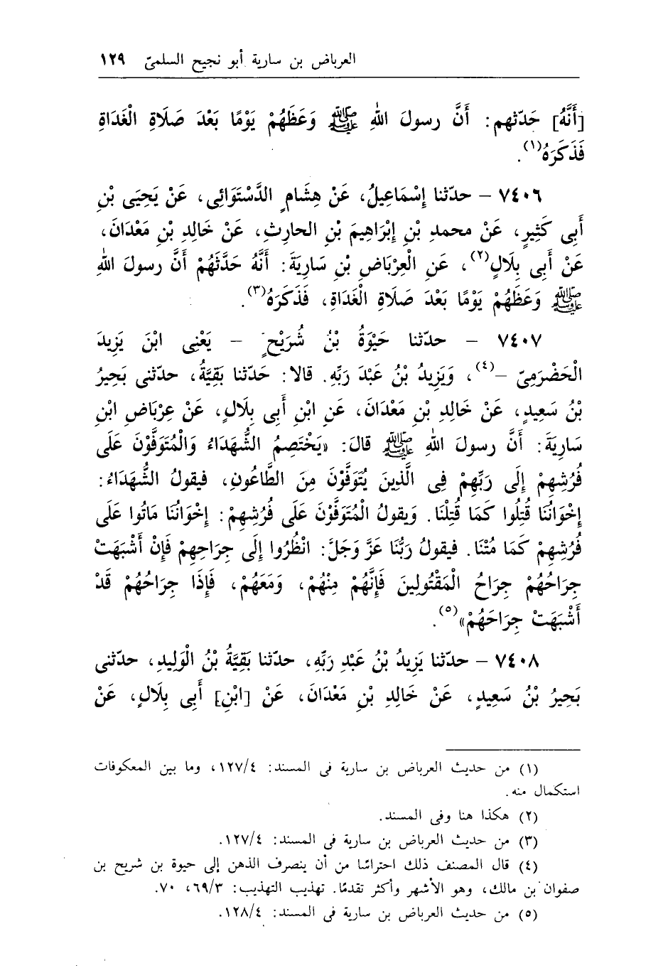 (¬4) من حديث العرباض بن سارية فى المسند: 4/128.