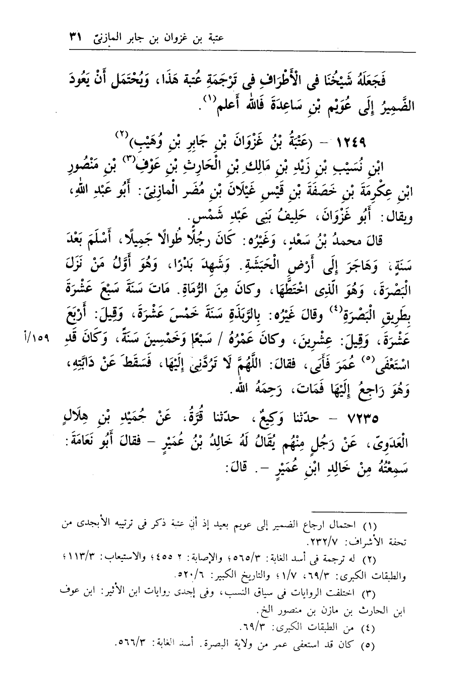(¬1) احتمال ارجاع الضمير إلى عويم بعيد إذ أن عتبة ذكر فى ترتيبه الأبجدى من تحفة الأشراف: 7/232.