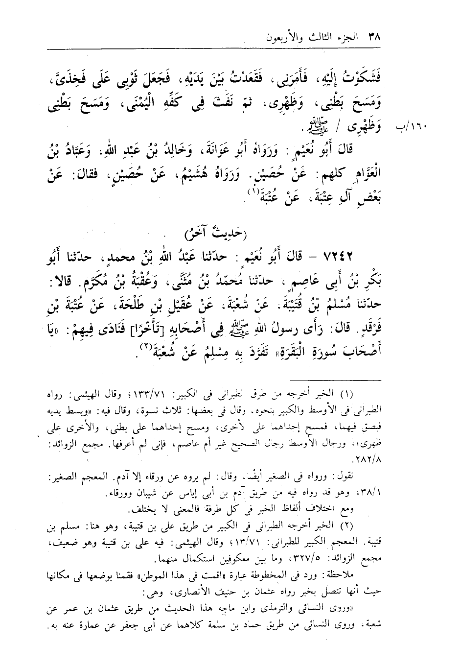 7242 - قال أبو نعيم: حدثنا عبد الله بن محمد، حدثنا أبو بكر بن أبى عاصم، حدثنا بن مثنى، وعقبة بن مكرم. قالا: حدثنا مسلم بن قتيبة، عن شعبة، عن عقيل بن طلحة، عن عتسبة بن فرقد. قال: رأى رسول الله - صلى الله عليه وسلم - فى أصحابه [تأخراً] فنادى فيهم: «يا أصحاب سورة البقرة» تفرد به مسلم عن شعبة (¬1)