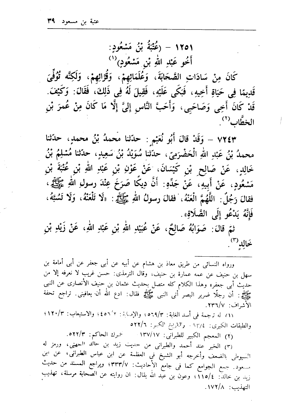 (¬1) له ترجمة فى أسد الغابة: 3/569؛ والإصابة: 2/456؛ والاستيعاب: 3/120؛ والطبقات الكبرى: 4/93، والتاريخ الكبير: 6/522.