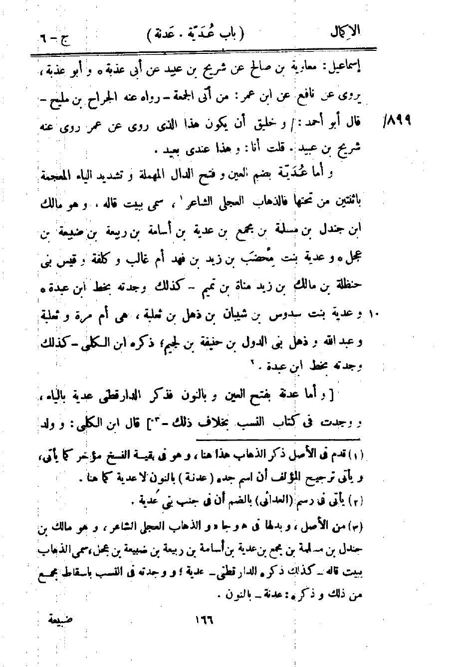 [وأما عدنة بفتح العين وبالنون فذكر الدارقطني عدية بالياء، ووجدت في كتاب النسب بخلاف ذلك3] قال ابن الكلبي: وولد