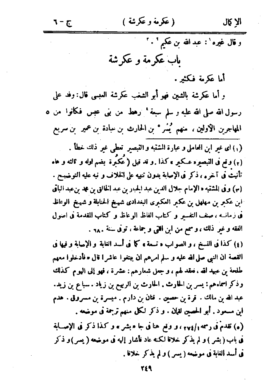 2 وقع في التبصير "عكير" كذا. وقد قيل: "عكبرة بضم أوله وثالثه وهاء تأنيث في آخره، ذكر في الإصابة بدون تنبيه على الخلاف ونبه عليه التوضيح.
