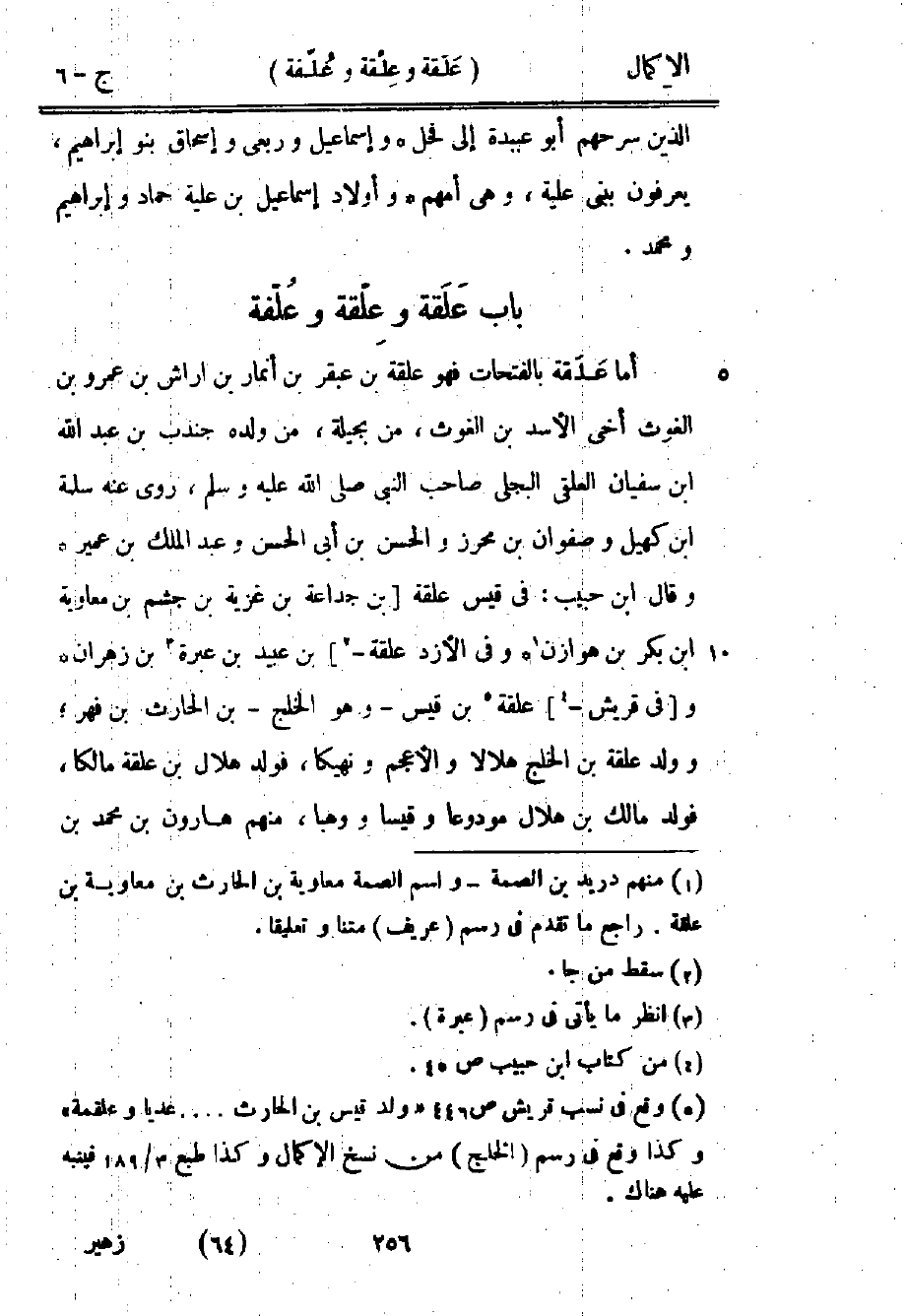 5 وقع في نسب قريش ص446 "ولد قيس بن الحارث....عديًّا وعلقمة" وكذا وقع في رسم "الخلج" من نسخ الإكمال وكذا طبع 3/ 189 فينبه عليه هناك.