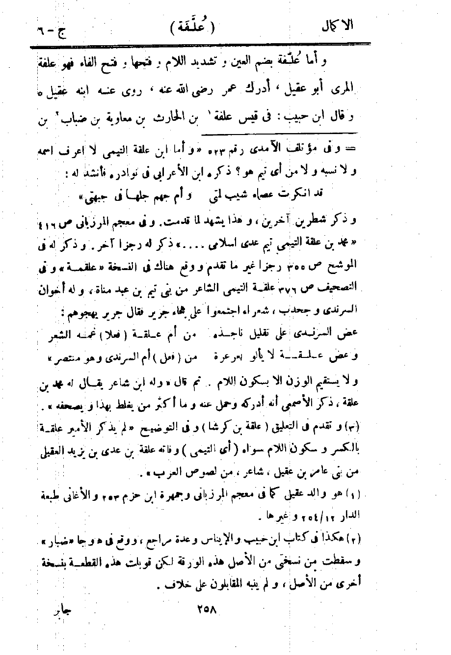3 وتقدم في التعليق "علقة بن كرشا" وفي التوضيح "لم يذكر الأمير علقة بالكسر وسكون اللام سواه "أي: التيمي" وفاته: علقة بن عدي بن يزيد العقيلي من بني عامر بن عقيل، شاعر، من لصوص العرب".