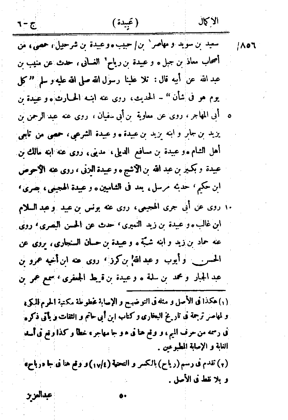 1 هكذا في الأصل ومثله في التوضيح والإصابة مخطوطة مكتبة الحرم المكي، ولمهاصر ترجمة في تاريخ البخاري وكتاب ابن أبي حاتم والثقات ويأتي ذكره في رسمه من حرف الميم، ووقع هنا في هـ وجا مهاجر خطأ, وكذا وقع في أسد الغابة والإصابة المطبوعين.