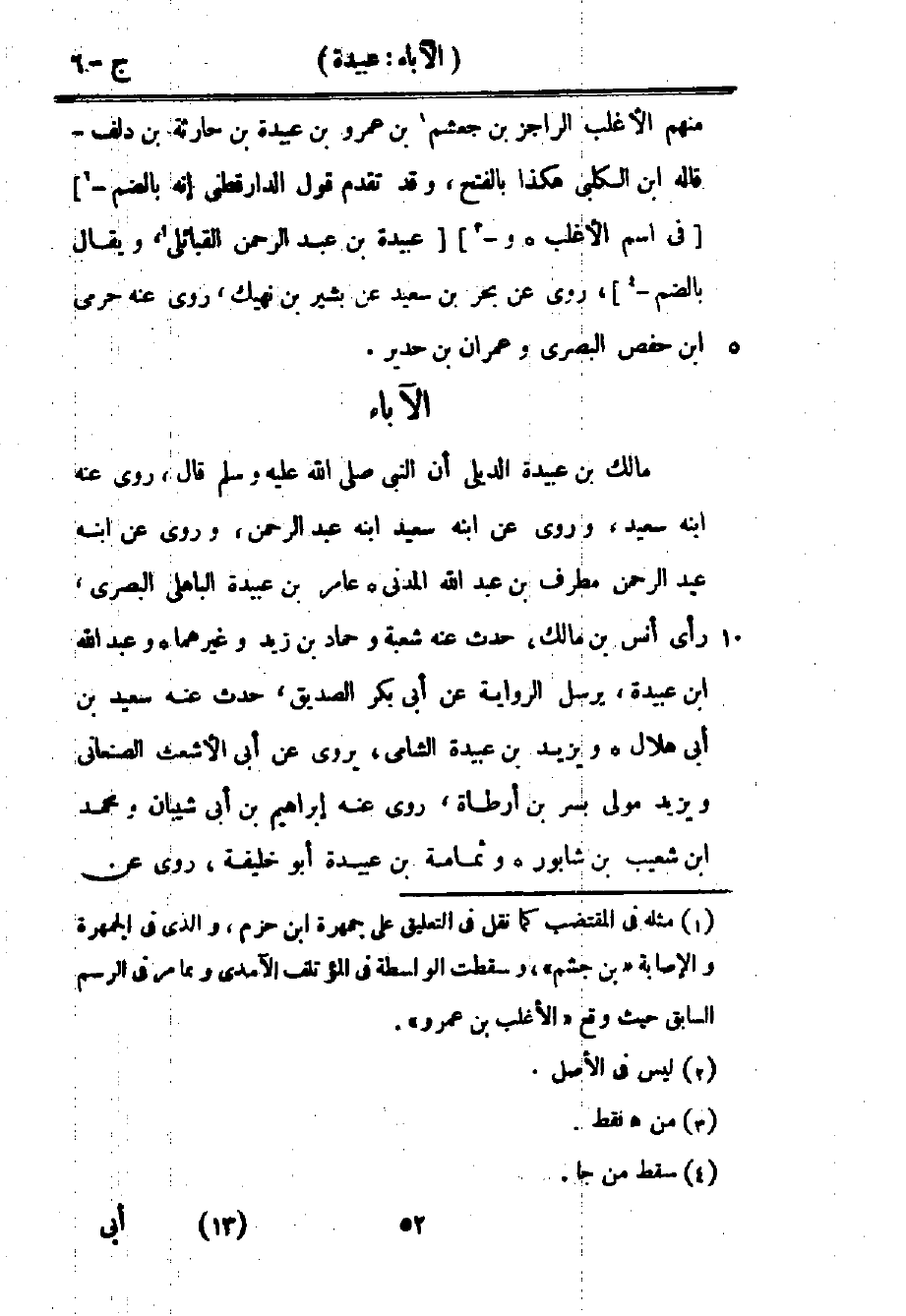 1 مثله في المقتضب كما نقل في التعليق على جمهرة ابن حزم، والذي في الجمهرة والإصابة "بن جشم"، وسقطت الواسطة في المؤتلف, الآمدي, ومما مر في الرسم السابق حيث وقع "الأغلب بن عمرو".
