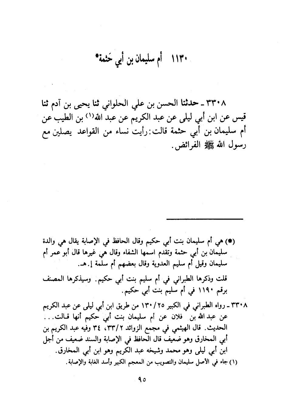 3308 - حَدَّثَنَا الْحَسَنُ بْنُ عَلِيٍّ الْحُلْوَانِيُّ , ثنا يَحْيَى بْنُ آدَمَ , ثنا قَيْسٌ , عَنِ ابْنِ أَبِي لَيْلَى , عَنْ عَبْدِ الْكَرِيمِ , عَنْ عَبْدِ اللَّهِ بْنِ الطَّيِّبِ , عَنْ أُمِّ سُلَيْمَانَ بْنِ أَبِي حَثْمَةَ , قَالَتْ: رَأَيْتُ §نِسَاءً مِنَ الْقَوَاعِدِ يُصَلِّينَ مَعَ رَسُولِ اللَّهِ صَلَّى اللهُ عَلَيْهِ وَسَلَّمَ الْفَرَائِضَ.
