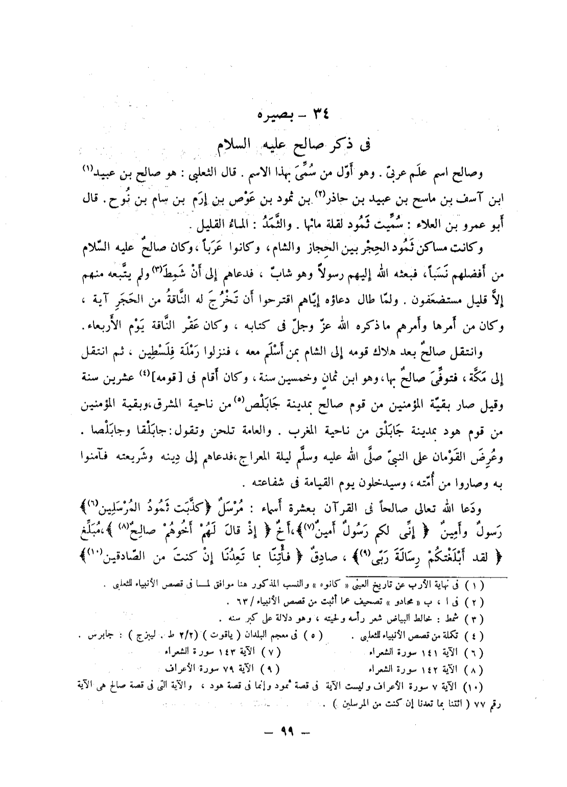 وصالح اسم علَم عربىّ. وهو أَوّل من سُمِّىَ بهذا الاسم. قال الثعلبى: هو صالح بن عبيد ابن آسف بن ماسح بن عبيد بن حاذر بن ثمود بن عَوْص بن إِرَم بن سام بن نُوح. قال أَبو عمرو بن العلاء: سُمِّيت ثَمُود لقلة مائها. والثَّمَدُ: الماءُ القليل.