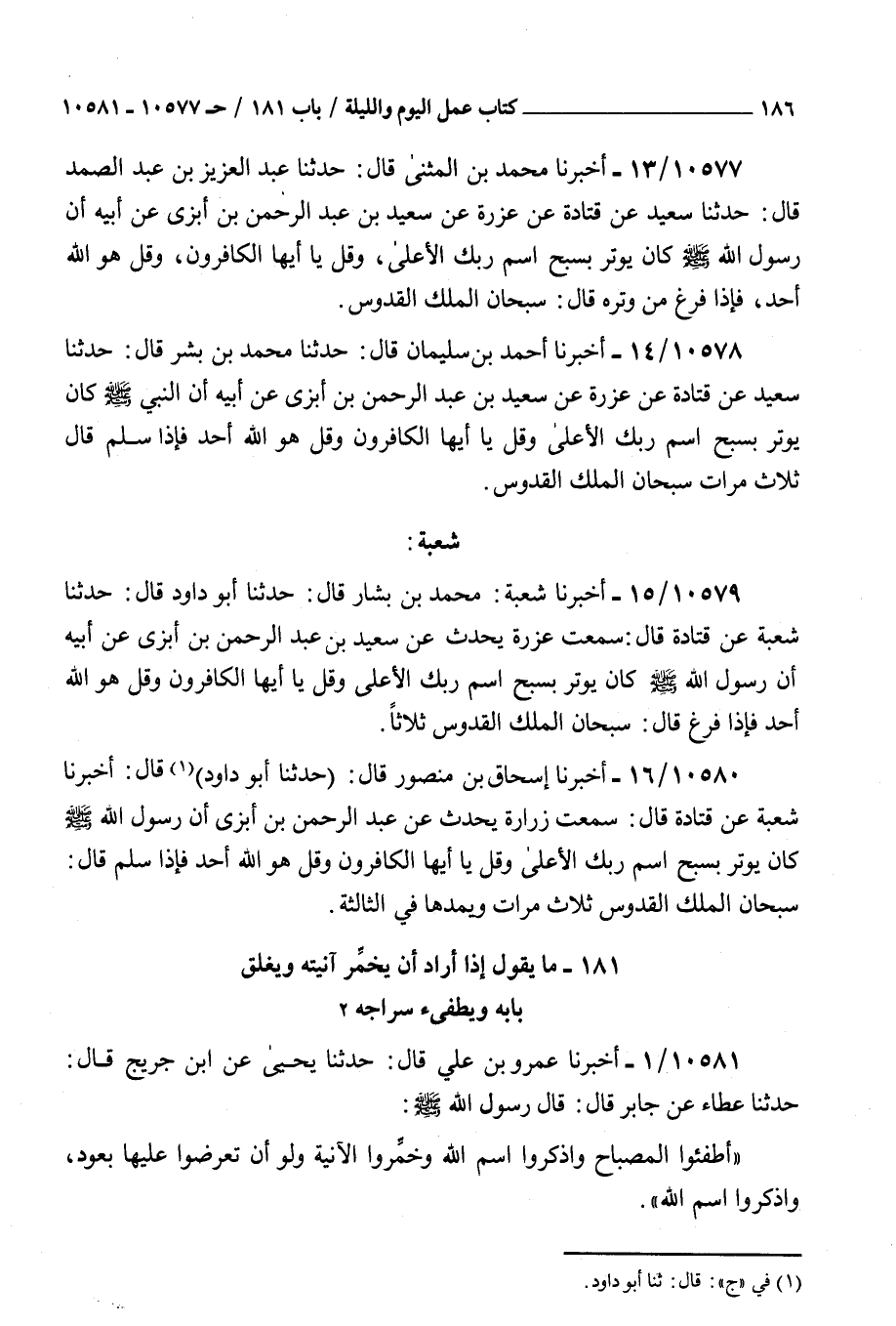 ( 181 ما يقول إذا أراد أن يخمر آنيته ويغلق بابه ويطفئ سراجه )