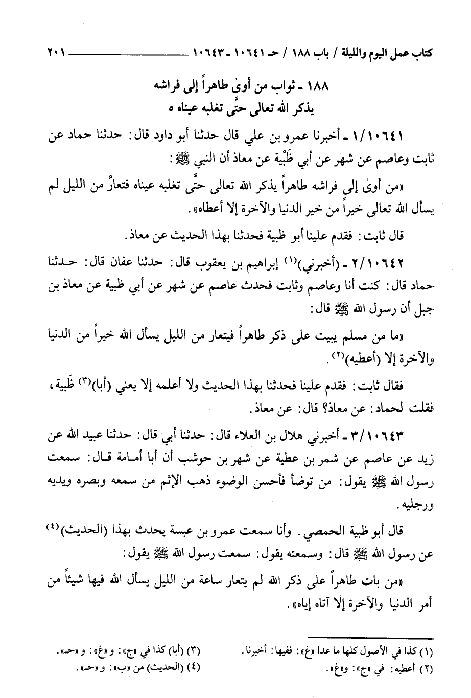 ( 188 ثواب من أوى طاهرا إلى فراشه يذكر الله تعالى حتى تغلبه عيناه )