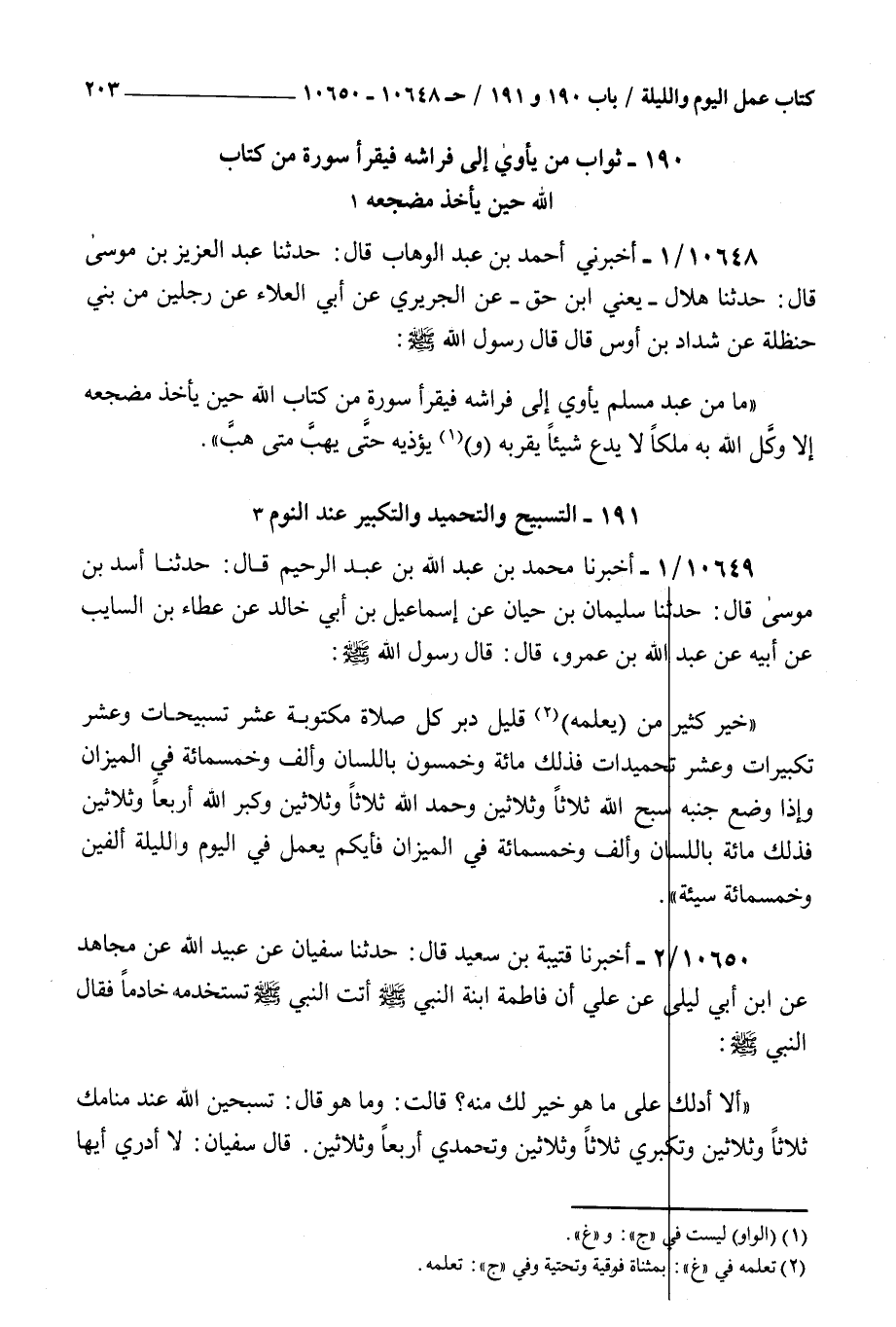 ( 191 التسبيح والتحميد والتكبير عند النوم )