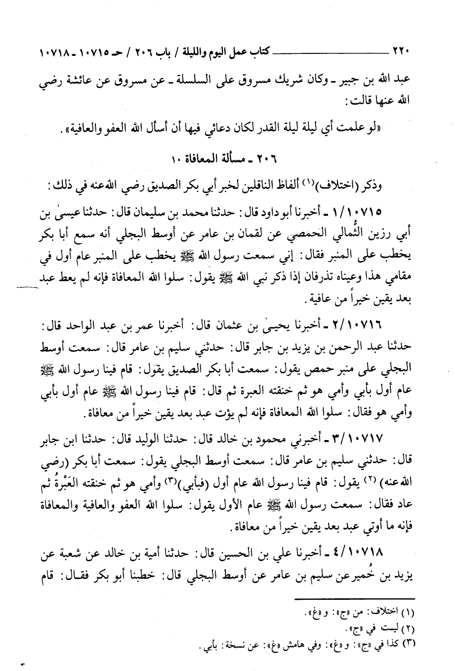 ( 206 مسألة المعافاة وذكر اختلاف ألفاظ الناقلين لخبر أبي بكر الصديق رضي الله عنه في ذلك )