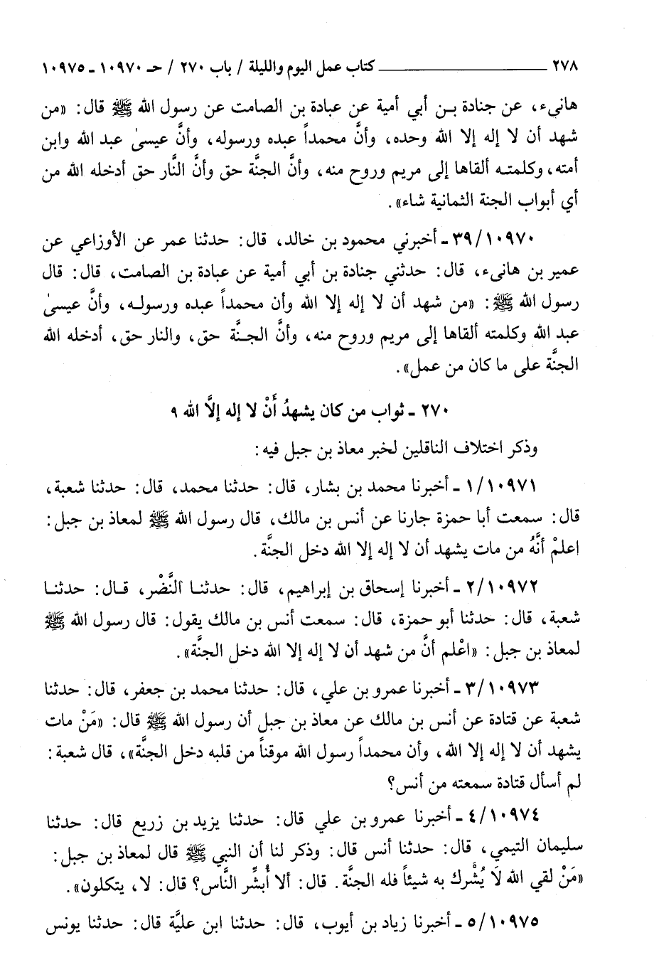 ( 270 ثواب من كان يشهد أن لا إله إلا الله وذكر اختلاف الناقلين لخبر معاذ بن جبل فيه )