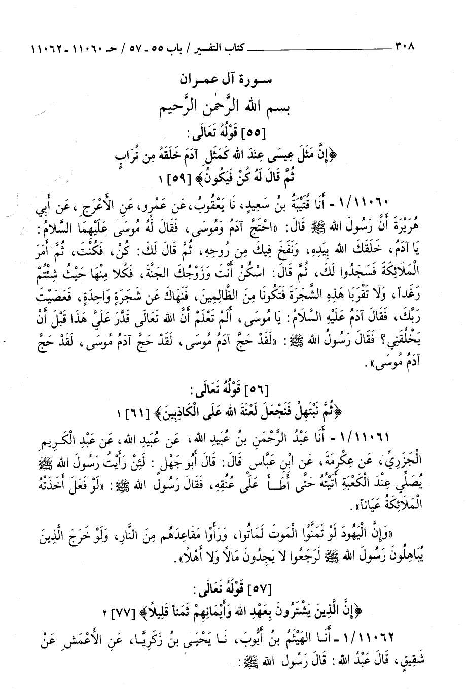 ( 55 قوله تعالى إن مثل عيسى عند الله كمثل آدم خلقه من تراب ثم قال له كن فيكون )