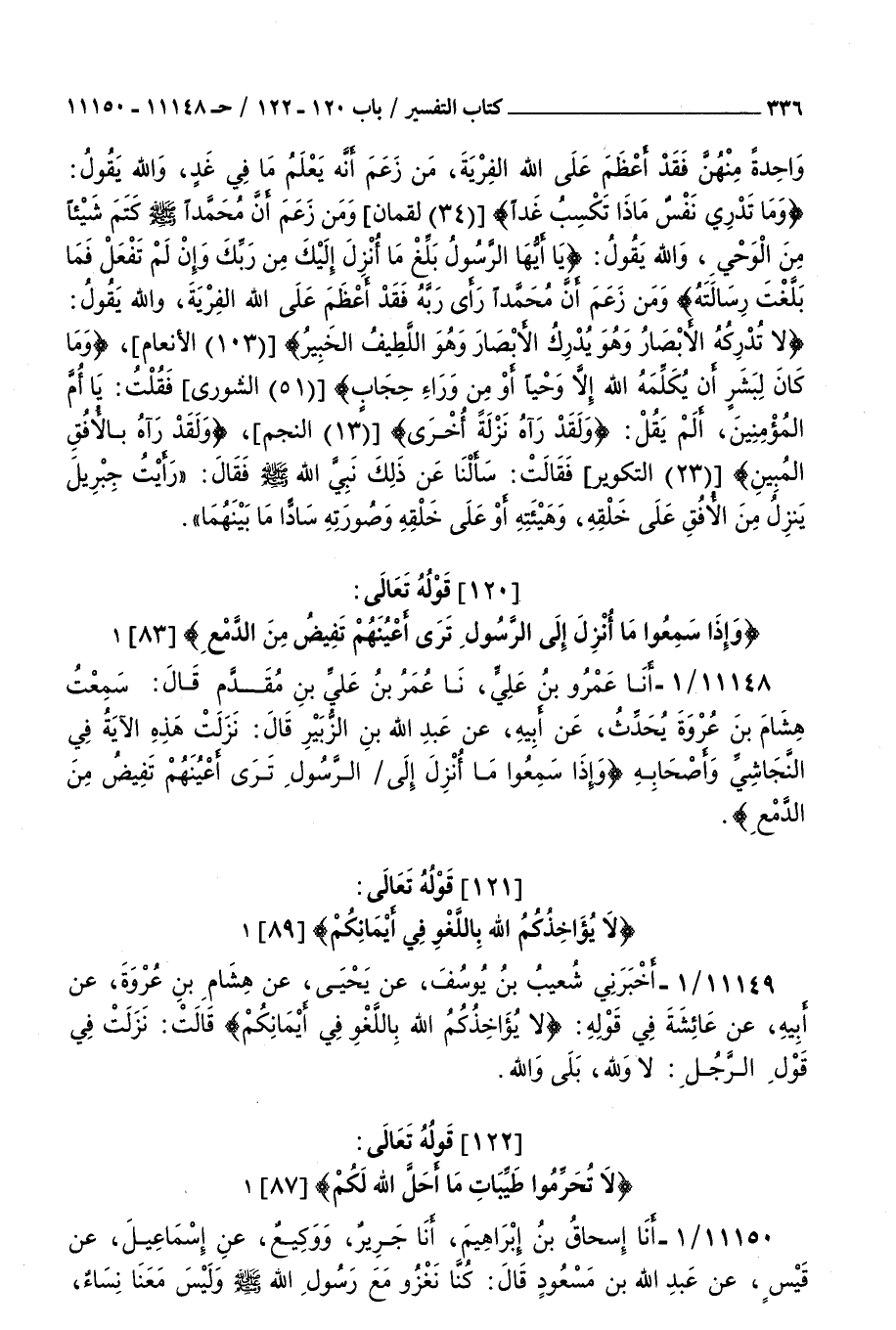 11148 - أنا عمرو بن علي نا عمر بن علي بن مقدم قال سمعت هشام بن عروة يحدث عن أبيه عن عبد الله بن الزبير قال : نزلت هذه الآية في النجاشي وأصحابه { وإذا سمعوا ما أنزل إلى الرسول ترى أعينهم تفيض من الدمع }