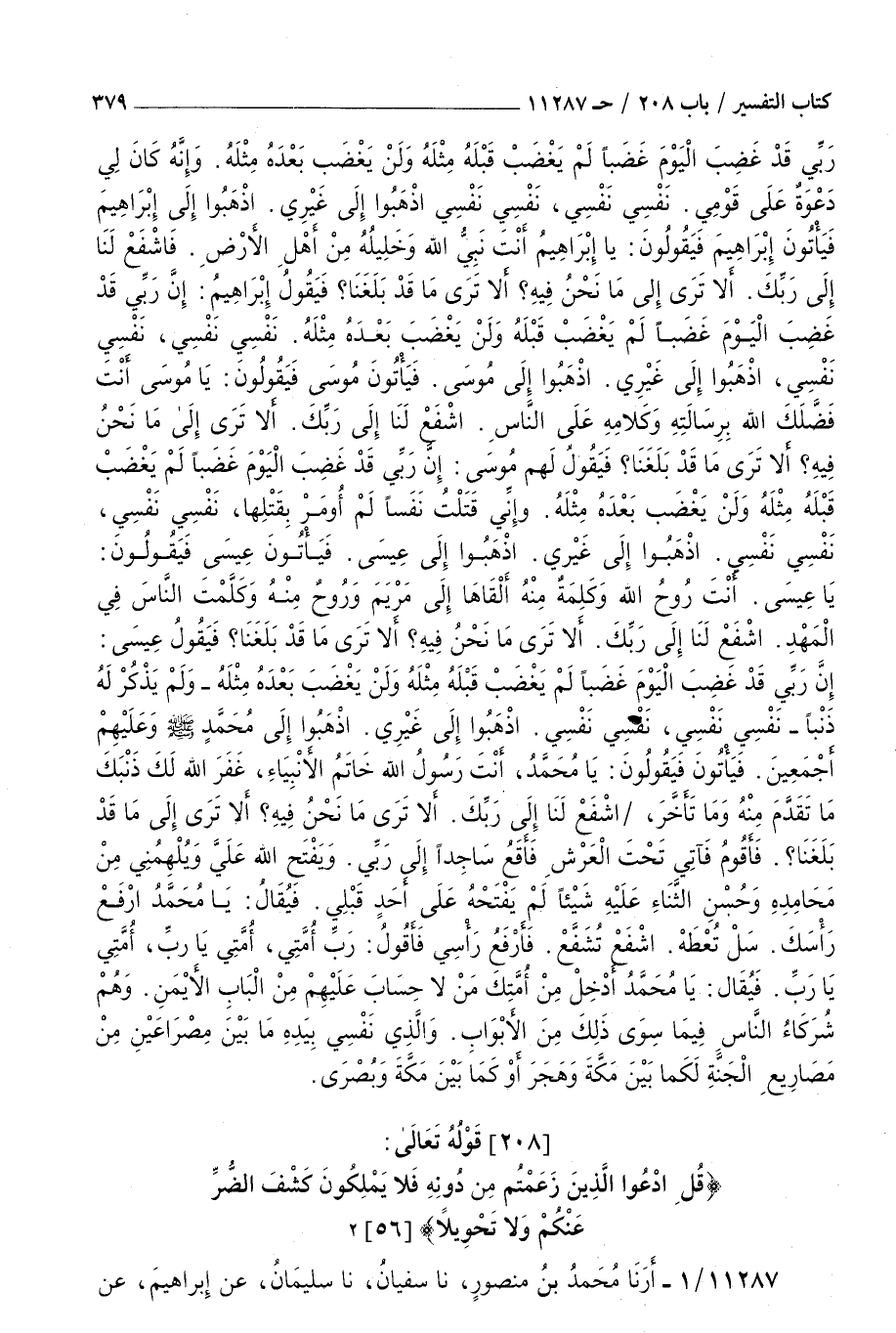 ( 208 قوله تعالى قل ادعوا الذين زعمتم من دونه فلا يملكون كشف الضر عنكم ولا تحويلا )
