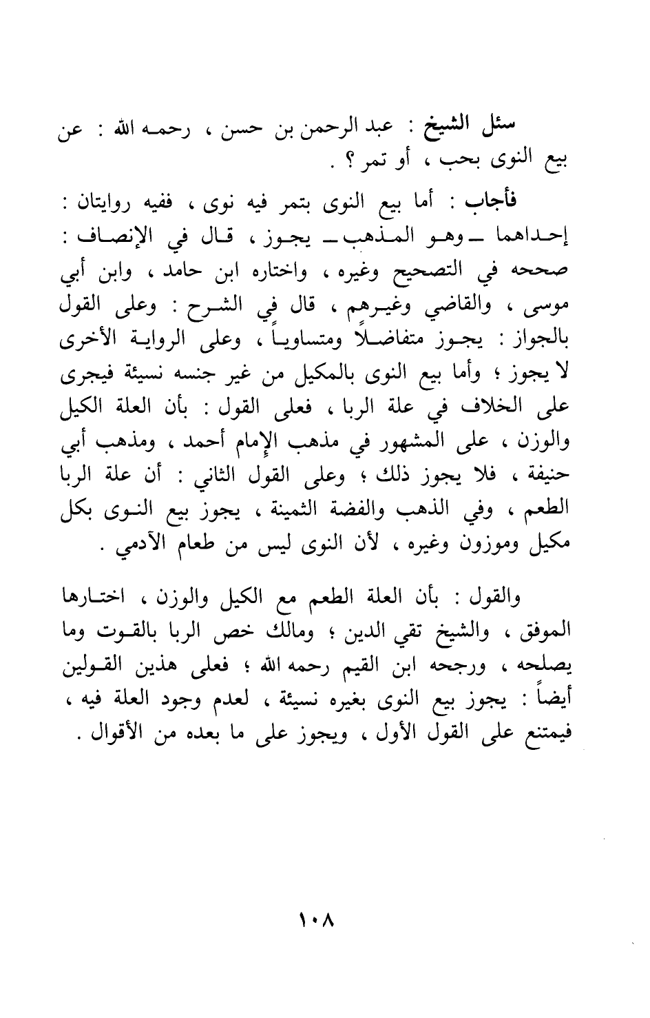 سئل الشيخ: عبد الرحمن بن حسن، - رحمه الله -: عن بيع النوى بحب، أو تمر؟.