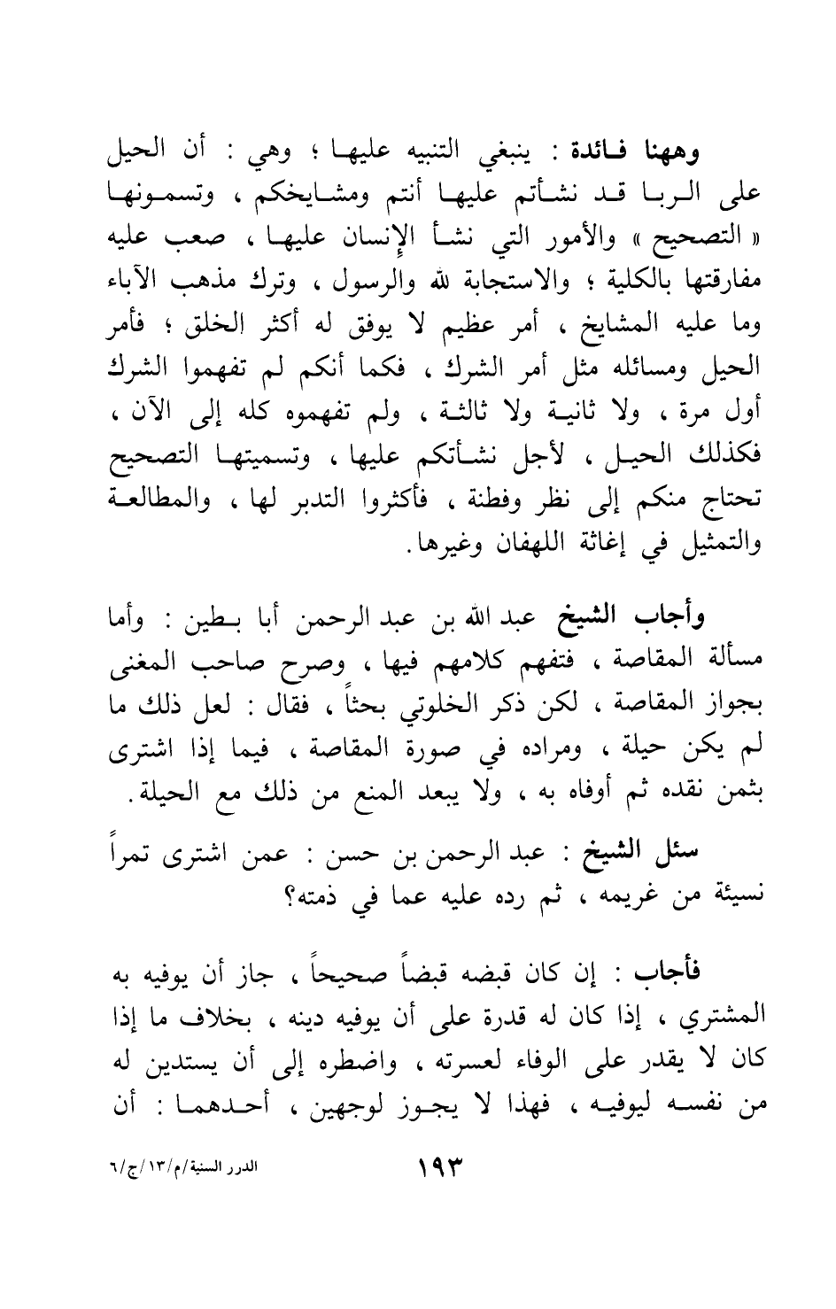 كتاب الدرر السنية في الأجوبة النجدية (اسم الجزء: 6)