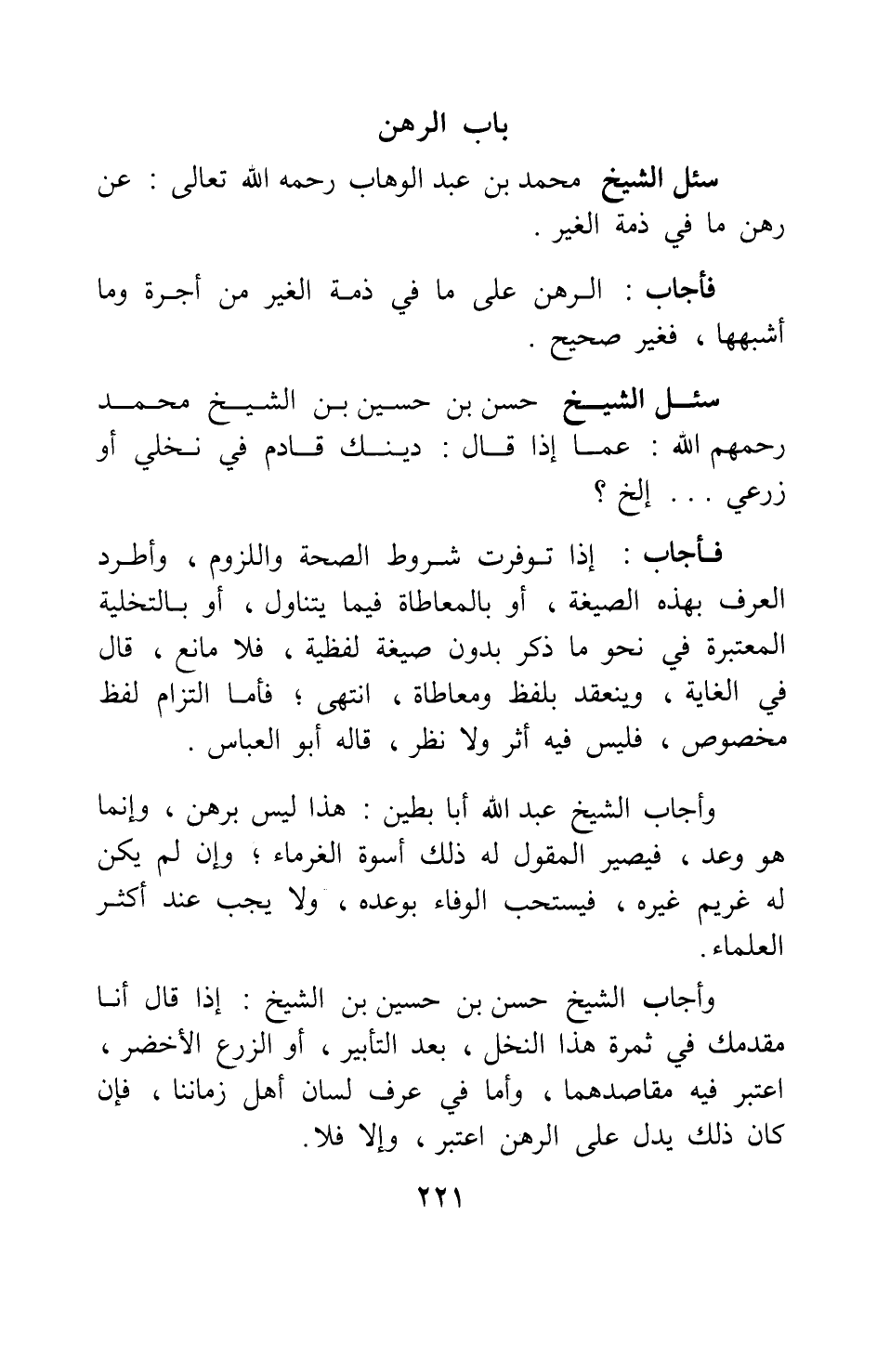 سئل الشيخ محمد بن عبد الوهاب رحمه الله تعالى: عن رهن ما في ذمة الغير.