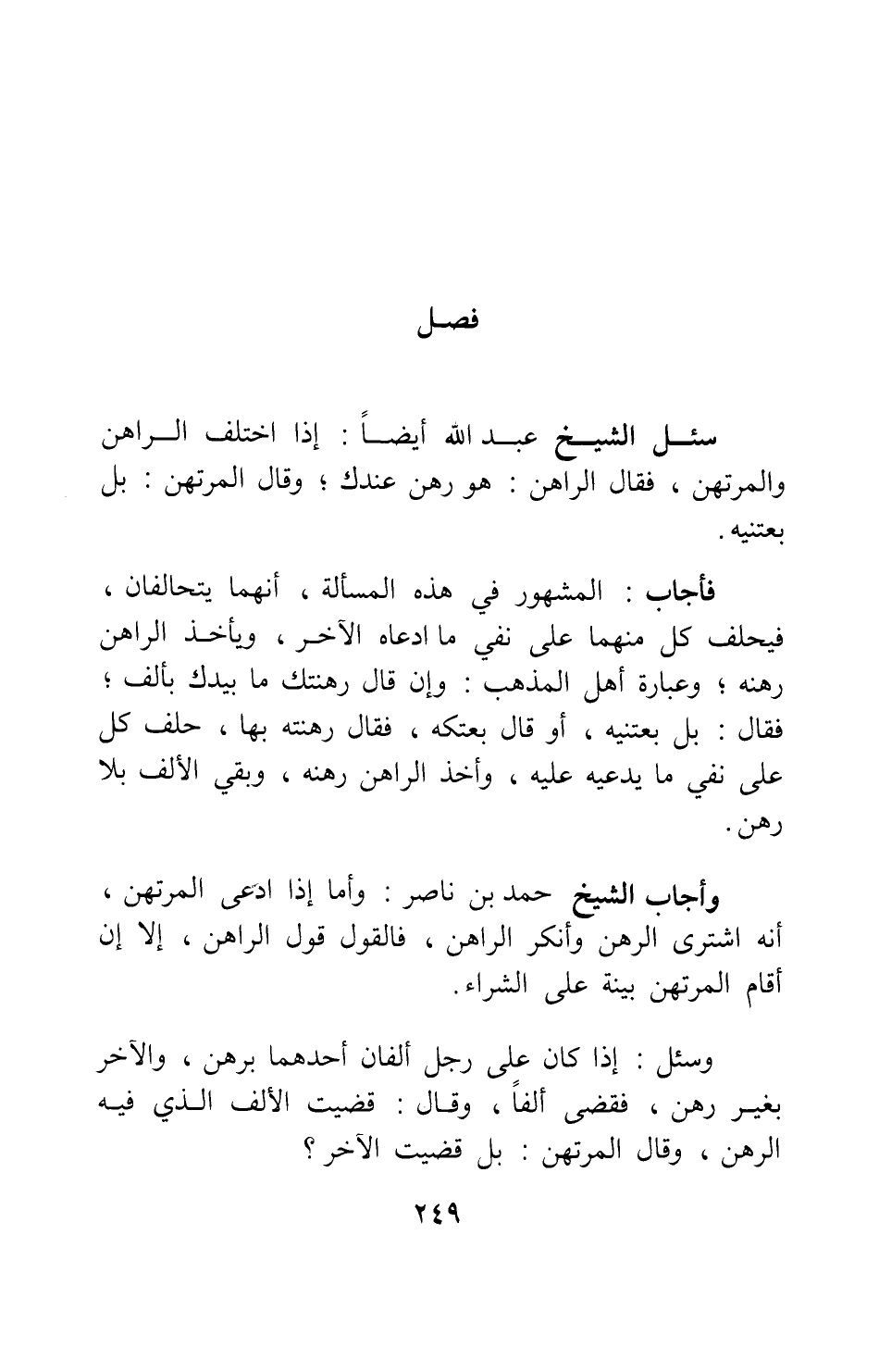 وأجاب الشيخ حمد بن ناصر: وأما إذا ادعى المرتهن، أنه اشترى الرهن وأنكر الراهن، فالقول قول الراهن، إلا إن أقام المرتهن بينة على الشراء.
