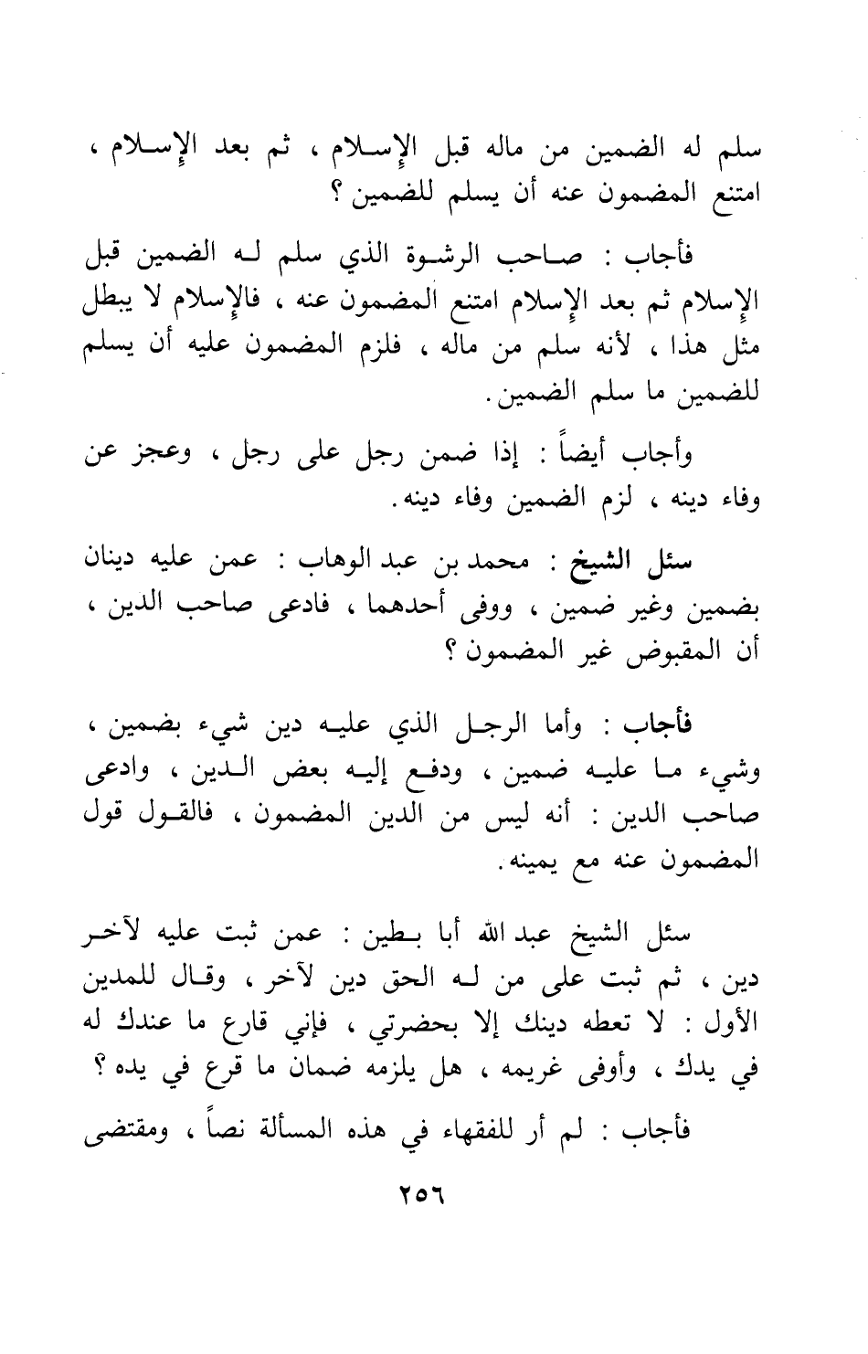 سئل الشيخ: محمد بن عبد الوهاب: عمن عليه دينان بضمين وغير ضمين، ووفى أحدهما فادعى صاحب الدين، أن المقبوض غير المضمون؟