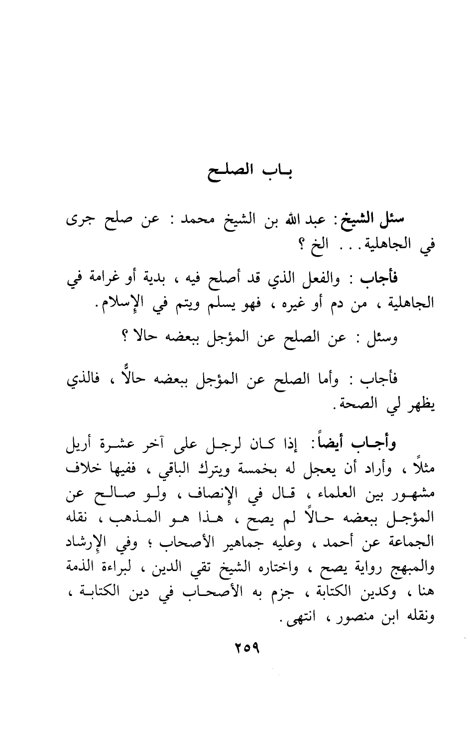 سئل الشيخ: عبد الله بن الشيخ محمد: عن صلح جرى في الجاهلية ... الخ؟