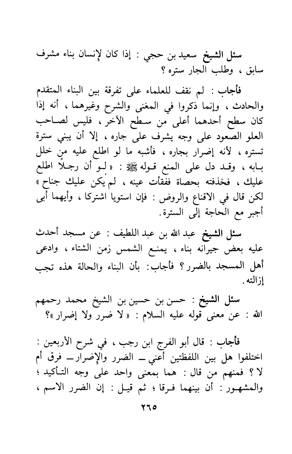 سئل الشيخ: حسن بن حسين بن الشيخ محمد رحمهم الله: عن معنى قوله عليه السلام: " لا ضرر ولا إضرار " 2.