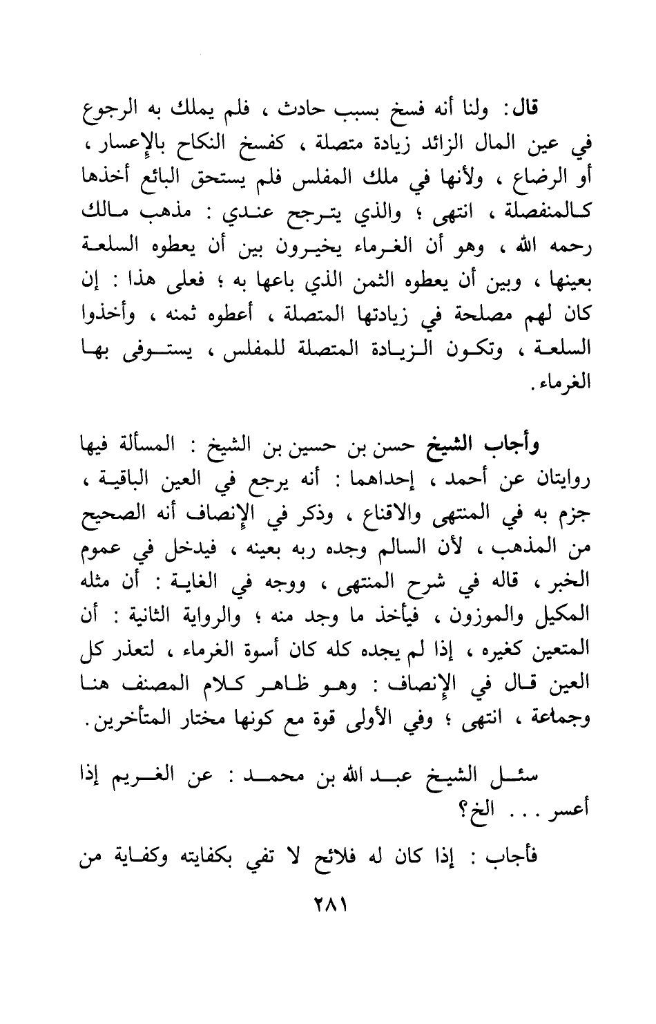 سئل الشيخ عبد الله بن محمد: عن الغريم إذا أعسر ... الخ؟
