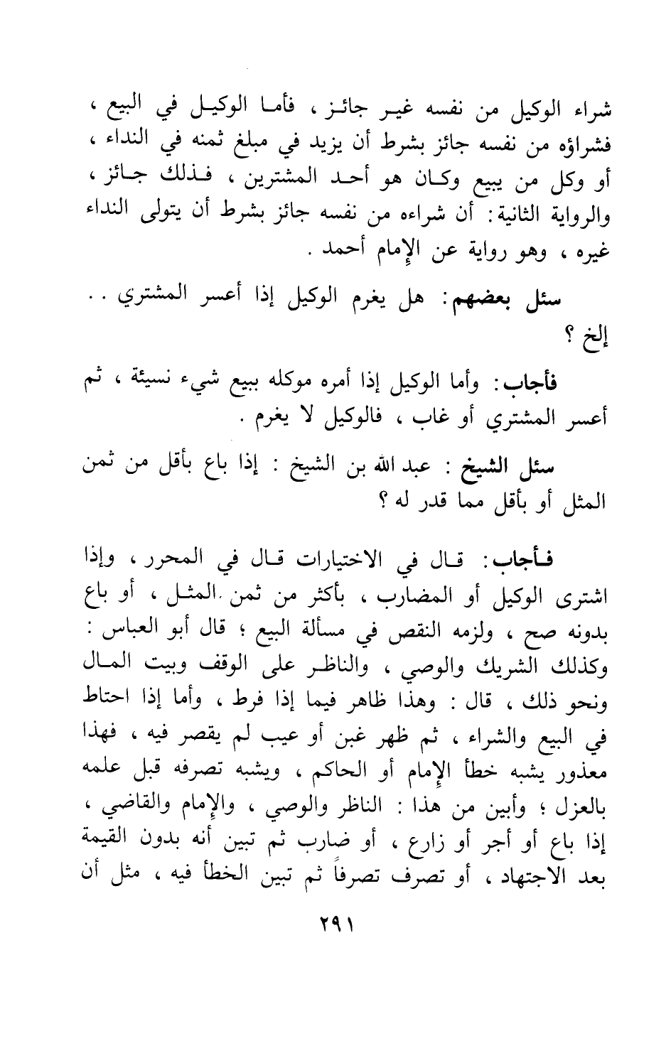 سئل الشيخ: عبد الله بن الشيخ: إذا باع بأقل من ثمن المثل أو بأقل مما قدر له؟