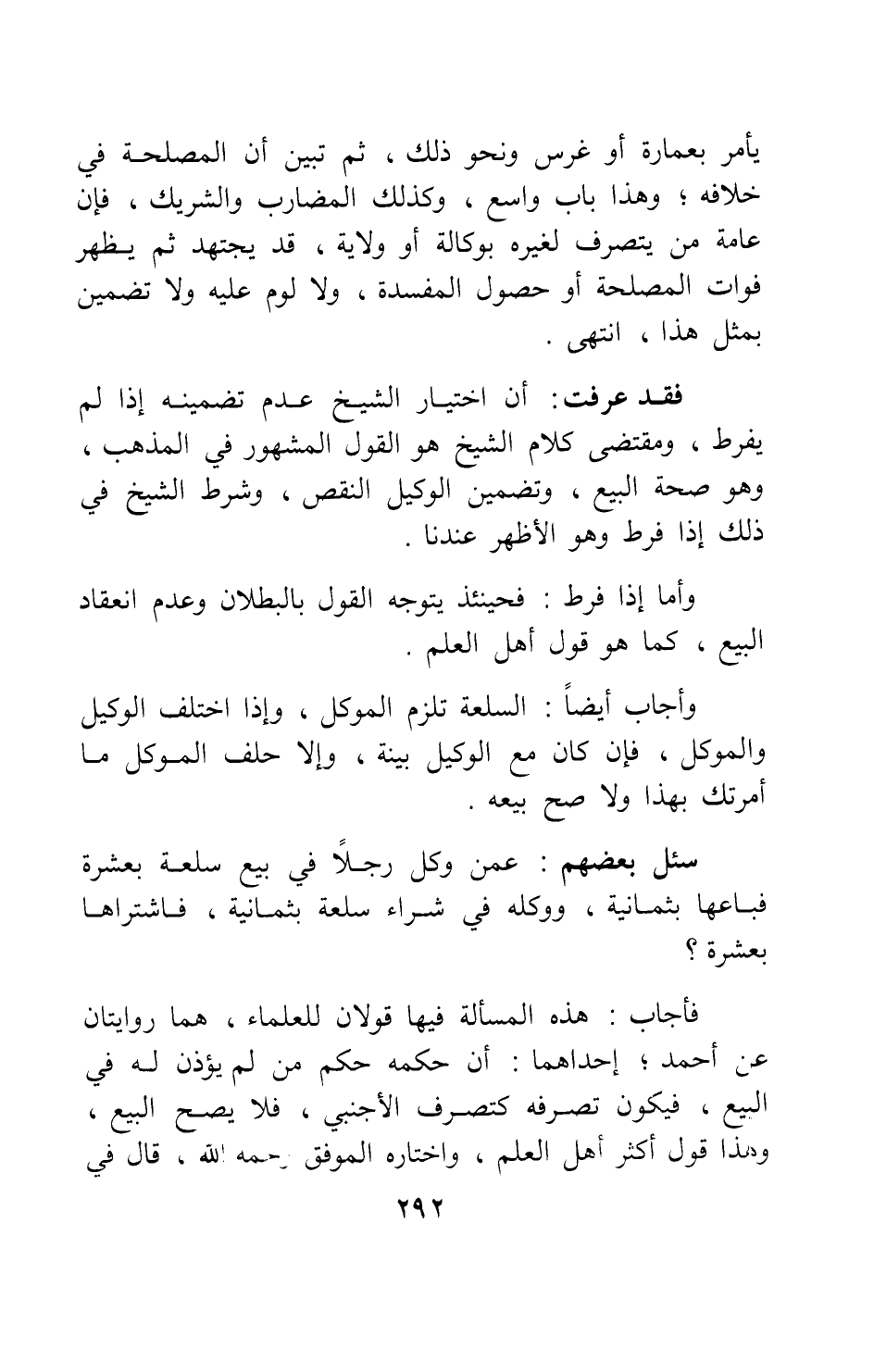 يأمر بعمارة أو غرس ونحو ذلك، ثم تبين أن المصلحة في خلافه ; وهذا باب واسع، وكذلك المضارب والشريك، فإن عامة من يتصرف لغيره بوكالة أو ولاية، قد يجتهد ثم يظهر فوات المصلحة أو حصول المفسدة، ولا لوم عليه ولا تضمين بمثل هذا، انتهى.