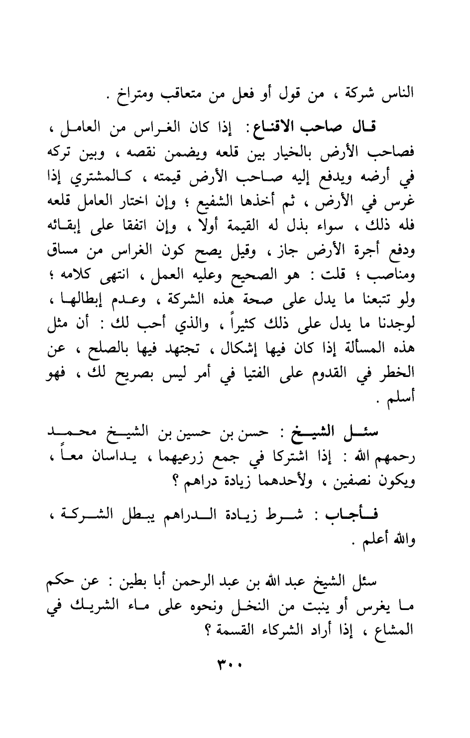 سئل الشيخ عبد الله بن عبد الرحمن أبا بطين: عن حكم ما يغرس أو ينبت من النخل ونحوه على ماء الشريك في المشاع، إذا أراد الشركاء القسمة؟
