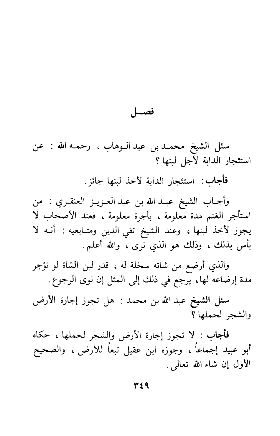 سئل الشيخ محمد بن عبد الوهاب، رحمه الله: عن استئجار الدابة لأجل لبنها؟
