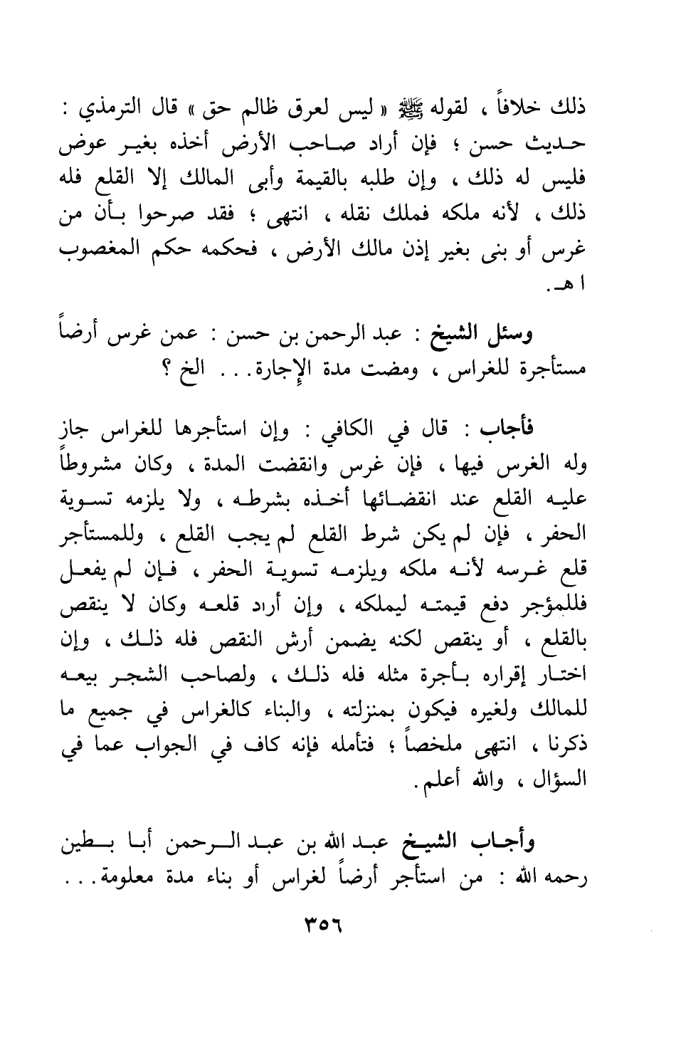 وسئل الشيخ: عبد الرحمن بن حسن: عمن غرس أرضا مستأجرة للغراس، ومضت مدة الإجارة ... إلخ؟
