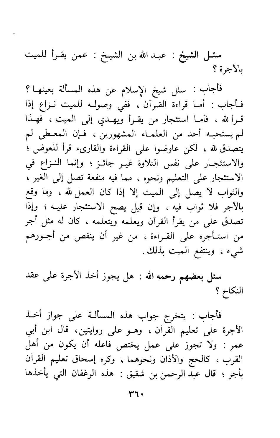 سئل الشيخ: عبد الله بن الشيخ: عمن يقرأ للميت بالأجرة؟