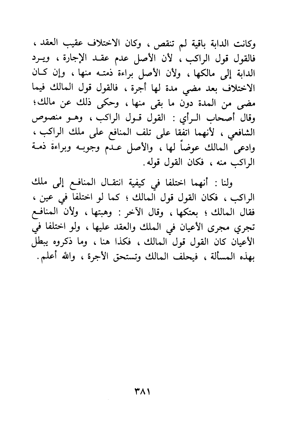 ولنا: أنهما اختلفا في كيفية انتقال المنافع إلى ملك الراكب فكان القول قول المالك; كما لو اختلفا في عين، فقال المالك; بعتكها، وقال الآخر: وهبتها، ولأن المنافع تجري مجرى الأعيان في الملك والعقد عليها، ولو اختلفا في الأعيان كان القول قول المالك، فكذا هنا، وما ذكروه يبطل بهذه المسألة، فيحلف المالك وتستحق الأجرة، والله أعلم.
