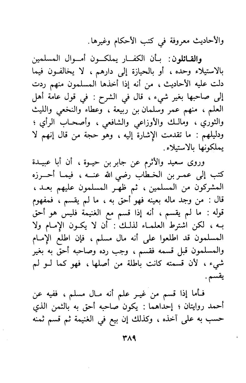 والقائلون: بأن الكفار يملكون أموال المسلمين بالاستيلاء وحده، أو بالحيازة إلى دارهم، لا يخالفون فيما دلت عليه الأحاديث، من أنه إذا أخذها المسلمون منهم ردت إلى صاحبها بغير شيء، قال في الشرح: في قول عامة أهل العلم، منهم عمر وسلمان بن ربيعة، وعطاء والنخعي والليث والثوري، ومالك والأوزاعي والشافعي، وأصحاب الرأي، ودليلهم: ما تقدمت الإشارة إليه، وهو حجة من قال إنهم لا يملكونها بالاستيلاء.