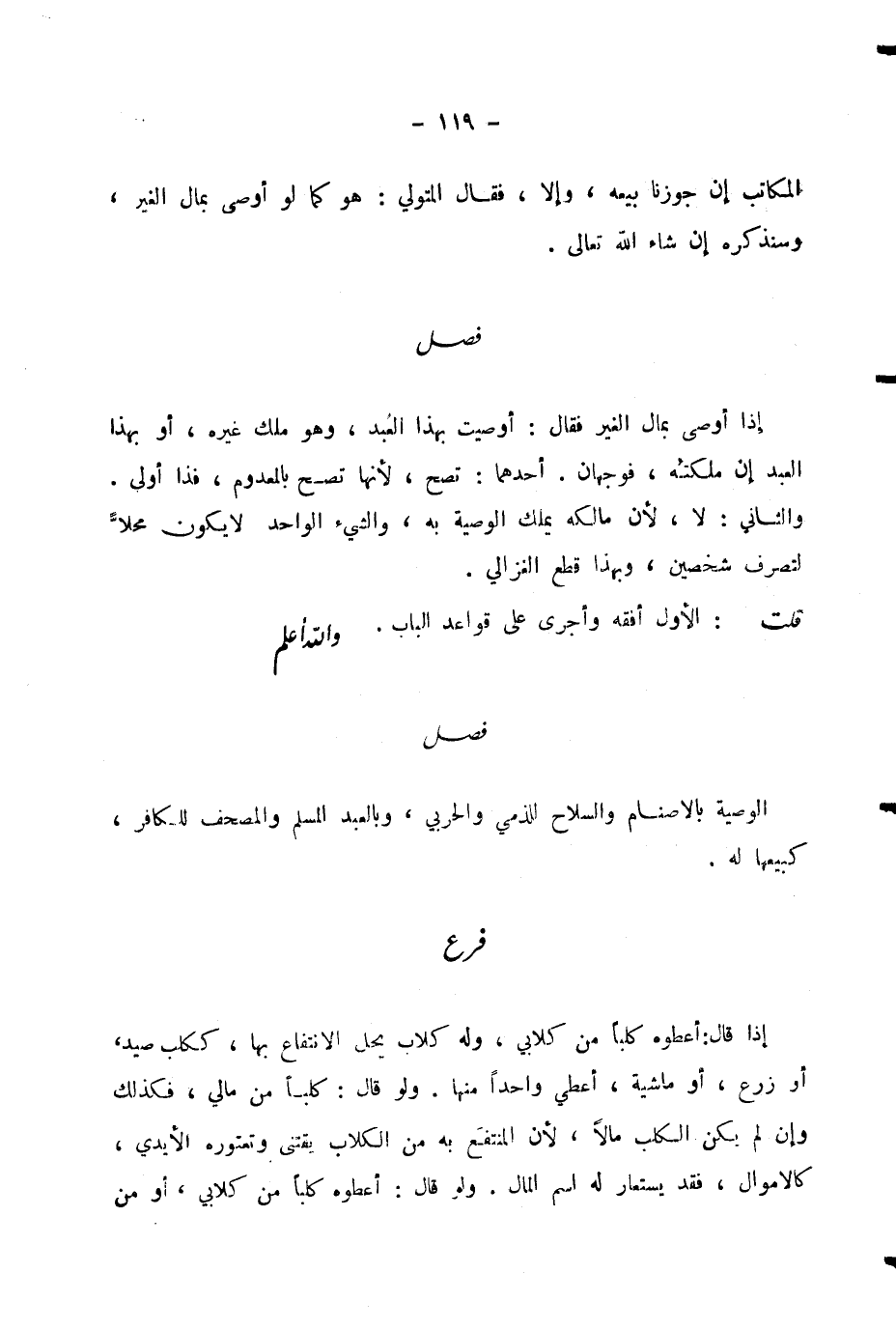 الْمُكَاتَبِ إِنْ جَوَّزْنَا بَيْعَهُ، وَإِلَّا فَقَالَ الْمُتَوَلِّي: هُوَ كَمَا لَوْ أَوْصَى بِمَالِ الْغَيْرِ، وَسَنَذْكُرُهُ - إِنْ شَاءَ اللَّهُ تَعَالَى -.