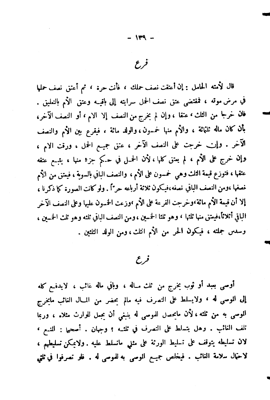 قَالَ لِأَمَتِهِ الْحَامِلِ: إِنْ أَعْتَقْتُ نِصْفَ حِمْلِكِ، فَأَنْتِ حُرَّةٌ، ثُمَّ أَعْتَقَ نِصْفَ حِمْلِهَا فِي مَرَضِ مَوْتِهِ، فَمُقْتَضَى عِتْقِ نِصْفِ الْحِمْلِ سَرَايَتُهُ إِلَى بَاقِيهِ وَعِتْقُ الْأُمِّ بِالتَّعْلِيقِ. فَإِنْ خَرَجَا مِنَ الثُّلُثِ، عَتَقَا، وَإِنْ لَمْ يَخْرُجْ مِنَ النِّصْفِ إِلَّا الْأُمُّ، أَوِ النِّصْفُ الْآخَرُ، بِأَنْ كَانَ مَالُهُ ثَلَاثَمِائَةٍ، وَالْأُمُّ مِنْهَا خَمْسُونَ، وَالْوَلَدُ مِائَةٌ، فَيُقْرَعُ بَيْنَ الْأُمِّ وَالنِّصْفِ الْآخَرِ. وَإِنْ خَرَجَتْ عَلَى النِّصْفِ الْآخَرِ عَتَقَ جَمِيعُ الْحَمْلِ وَرَقَّتِ الْأُمُّ، وَإِنْ خَرَجَ عَلَى الْأُمِّ لَمْ يُعْتَقْ كُلُّهَا ; لِأَنَّ الْحَمْلَ فِي حُكْمِ جُزْءٍ مِنْهَا يَتْبَعُ عِتْقُهُ عِتْقَهَا، فَتُوَزَّعُ قِيمَةُ الثُّلُثِ وَهِيَ خَمْسُونَ عَلَى الْأُمِّ، وَالنِّصْفُ الْبَاقِي بِالسَّوِيَّةِ، فَيُعْتَقُ مِنَ الْأُمِّ نِصْفُهَا، وَمِنَ النِّصْفِ الْبَاقِي نِصْفُهُ، فَيَكُونُ ثَلَاثَةُ أَرْبَاعِهِ حُرًّا. وَلَوْ كَانَتِ الصُّورَةُ كَمَا ذَكَرْنَا إِلَّا أَنَّ قِيمَةَ الْأُمِّ مِائَةٌ، وَخَرَجَتِ الْقُرْعَةُ عَلَى الْأُمِّ وُزِّعَتِ الْخَمْسُونَ عَلَيْهَا وَعَلَى النِّصْفِ الْآخَرِ الْبَاقِي أَثْلَاثًا، فَيُعْتَقُ مِنْهَا ثُلُثُهَا، وَهُوَ ثُلُثَا الْخَمْسِينَ، وَمِنَ النِّصْفِ الْبَاقِي ثُلُثُهُ وَهُوَ ثُلُثُ الْخَمْسِينَ، وَسُدُسُ جُمْلَتِهِ، فَيَكُونُ الْحُرُّ مِنَ الْأُمِّ الثُّلُثُ، وَمِنَ الْوَلَدِ الثُّلُثَيْنِ.