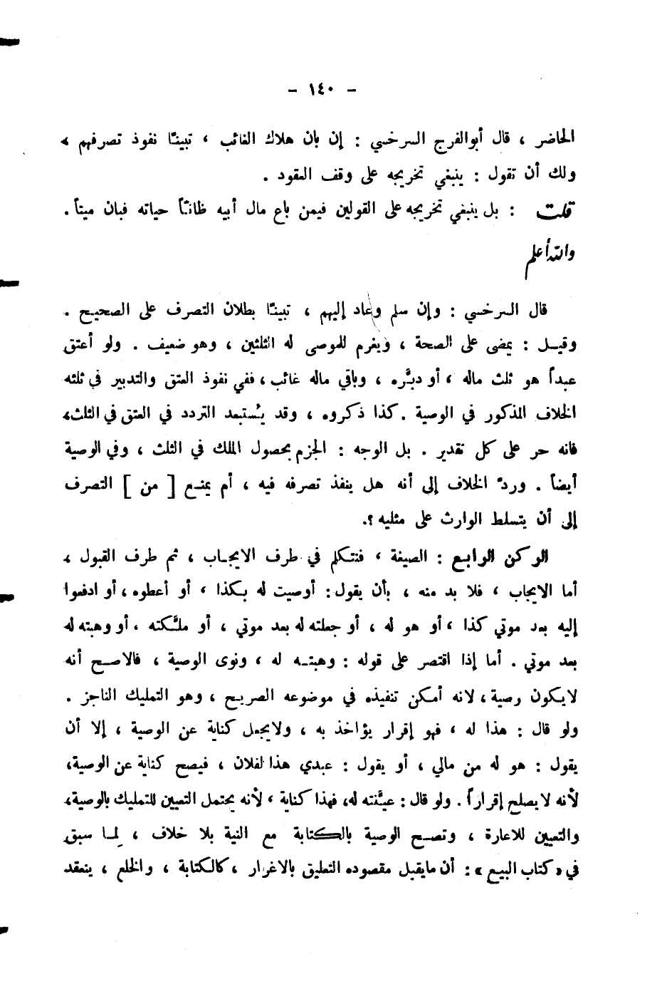 قَالَ السَّرَخْسِيُّ: وَإِنْ سَلِمَ وَعَادَ إِلَيْهِمْ، تَبَيَّنَّا بُطْلَانَ التَّصَرُّفِ عَلَى الصَّحِيحِ. وَقِيلَ: يُمْضَى عَلَى الصِّحَّةِ، وَيَغْرَمُ لِلْمُوصَى لَهُ الثُّلُثَيْنِ، وَهُوَ ضَعِيفٌ. وَلَوْ أَعْتَقَ عَبْدًا هُوَ ثُلُثُ مَالِهِ، أَوْ دَبَّرَهُ، وَبَاقِي مَالِهِ غَائِبٌ فَفِي نُفُوذِ الْعِتْقِ وَالتَّدْبِيرِ فِي ثُلُثِهِ الْخِلَافُ الْمَذْكُورُ فِي الْوَصِيَّةِ. كَذَا ذَكَرُوهُ، وَقَدْ يُسْتَبْعَدُ التَّرَدُّدُ فِي الْعِتْقِ فِي الثُّلُثِ، فَإِنَّهُ حُرٌّ عَلَى كُلِّ تَقْدِيرٍ. بَلِ الْوَجْهُ: الْجَزْمُ بِحُصُولِ الْمِلْكِ فِي الثُّلُثِ، وَفِي الْوَصِيَّةِ أَيْضًا. وَرُدَّ الْخِلَافُ إِلَى أَنَّهُ هَلْ يَنْفُذُ تَصَرُّفُهُ فِيهِ، أَمْ يُمْنَعُ [مِنَ] التَّصَرُّفِ إِلَى أَنْ يَتَسَلَّطَ الْوَارِثُ عَلَى مِثْلَيْهِ؟ .