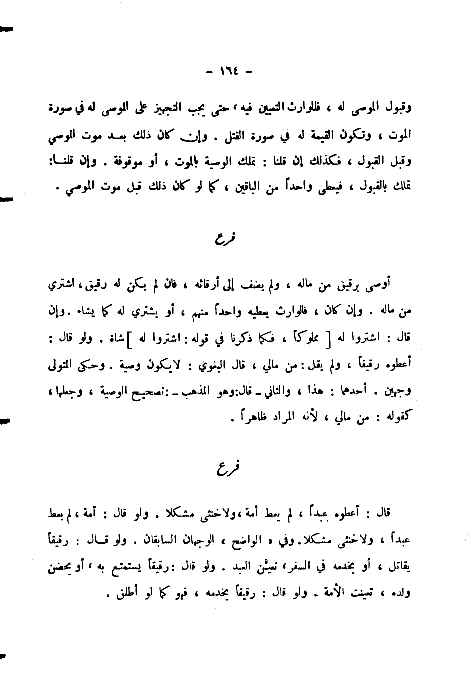 فَرْعٌ: أَوْصَى بِرَقِيقٍ مِنْ مَالِهِ، وَلَمْ يُضِفْ إِلَى أَرِقَّائِهِ، فَإِنْ لَمْ يَكُنْ لَهُ رَقِيقٌ، اشْتُرِيَ مِنْ مَالِهِ.