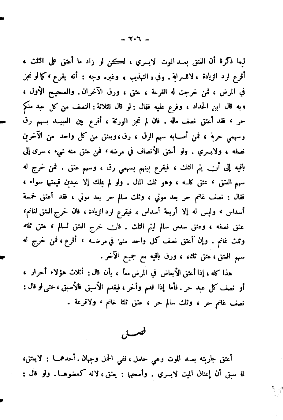 وَلَوْ أَعْتَقَ الْأَنْصَافَ فِي مَرَضِهِ، فَمَنْ عَتَقَ مِنْهُ شَيْءٌ، سَرَى إِلَى بَاقِيهِ إِلَى أَنْ يَتِمَّ الثُّلُثُ، فَيُقْرَعُ بَيْنَهُمْ بِسَهْمَيْ رِقٍّ، وَسَهْمِ عِتْقٍ.