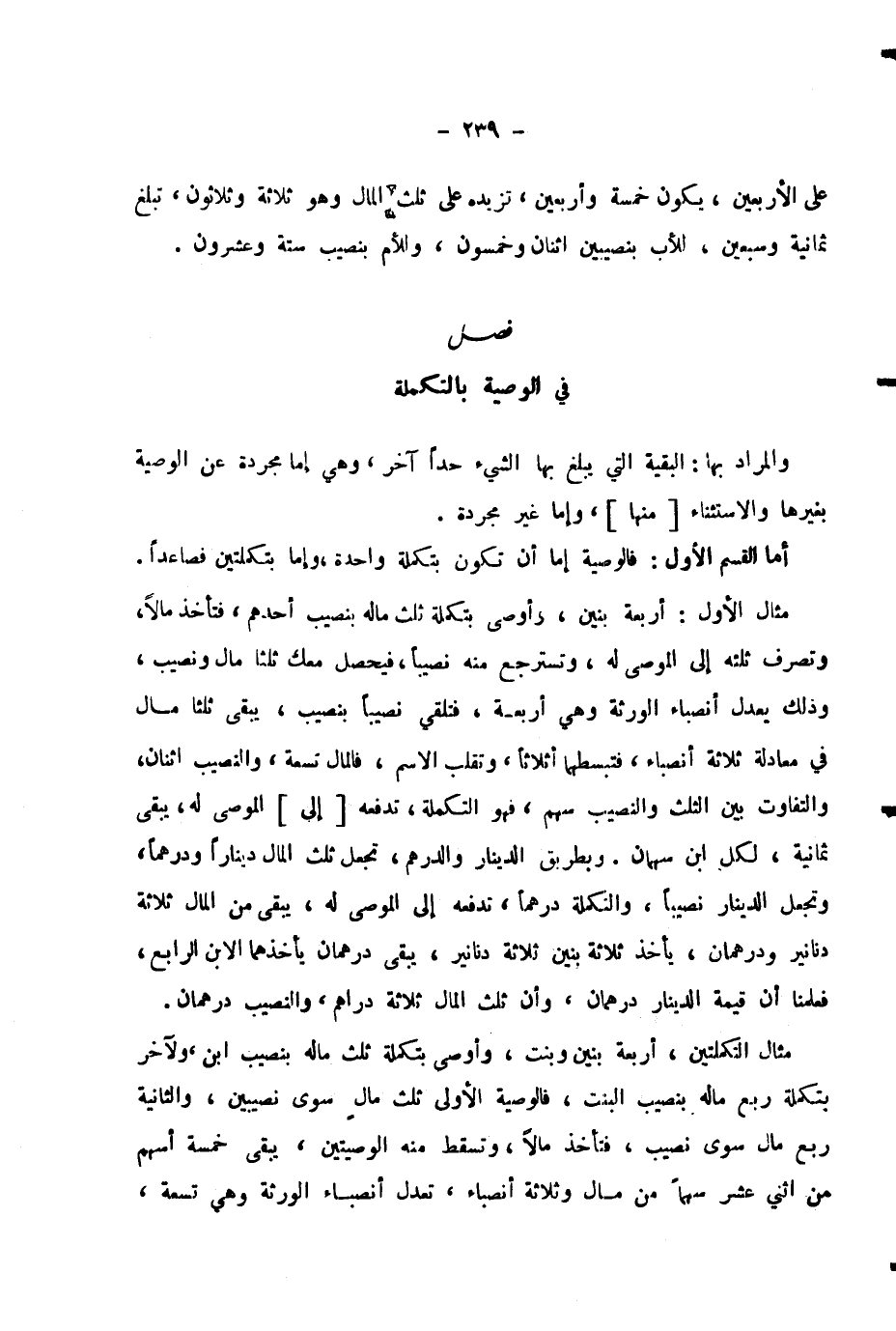 فَصْلٌ فِي الْوَصِيَّةِ بِالتَّكْمِلَةِ