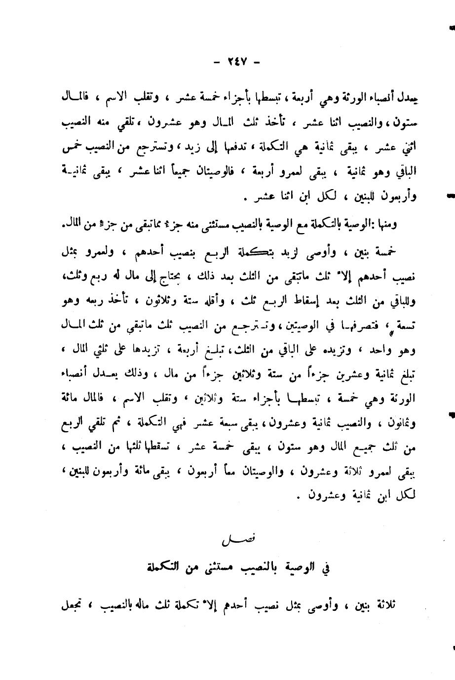 فَصْلٌ فِي الْوَصِيَّةِ بِالنَّصِيبِ مُسْتَثْنًى مِنَ التَّكْمِلَةِ