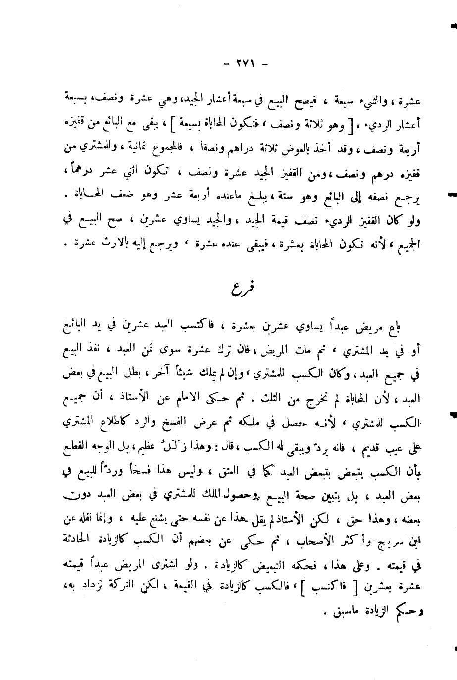 ثُمَّ حَكَى الْإِمَامُ عَنِ الْأُسْتَاذِ، أَنَّ جَمِيعَ الْكَسْبِ لِلْمُشْتَرِي ; لِأَنَّهُ حَصَلَ فِي مِلْكِهِ ثُمَّ عَرَضَ الْفَسْخُ وَالرَّدُّ كَاطِّلَاعِ الْمُشْتَرِي عَلَى عَيْبٍ قَدِيمٍ، فَإِنَّهُ يُرَدُّ وَيَبْقَى لَهُ الْكَسْبُ، قَالَ: وَهَذَا زَلَلٌ عَظِيمٌ، بَلِ الْوَجْهُ الْقَطْعُ بِأَنَّ الْكَسْبَ يَتَبَعَّضُ بِتَبَعُّضِ الْعَبْدِ كَمَا فِي الْعِتْقِ، وَلَيْسَ هَذَا فَسْخًا وَرَدًّا لِلْبَيْعِ فِي بَعْضِ الْعَبْدِ، بَلْ يَتَبَيَّنُ صِحَّةُ الْبَيْعِ وَحُصُولُ الْمِلْكِ لِلْمُشْتَرِي فِي بَعْضِ الْعَبْدِ دُونَ بَعْضِهِ، وَهَذَا حَقٌّ، لَكِنَّ الْأُسْتَاذَ لَمْ يَقُلْ هَذَا عَنْ نَفْسِهِ حَتَّى يُشَنَّعَ عَلَيْهِ، وَإِنَّمَا نَقَلَهُ عَنِ ابْنِ سُرَيْجٍ وَأَكْثَرِ الْأَصْحَابِ، ثُمَّ حَكَى عَنْ بَعْضِهِمْ أَنَّ الْكَسْبَ كَالزِّيَادَةِ الْحَادِثَةِ فِي قِيمَتِهِ.