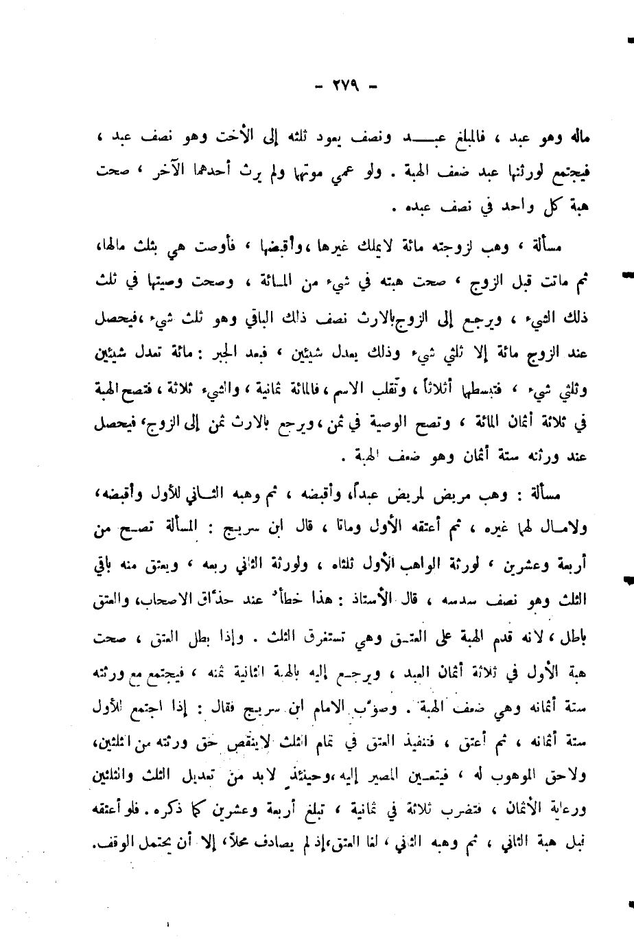 وَصَوَّبَ الْإِمَامُ ابْنُ سُرَيْجٍ فَقَالَ: إِذَا اجْتَمَعَ لِلْأَوَّلِ سِتَّةُ أَثْمَانِهِ، ثُمَّ أَعْتَقَ، فَتَنْفِيذُ الْعِتْقِ فِي تَمَامِ الثُّلُثِ لَا يُنْقِصُ حَقَّ وَرَثَتِهِ مِنَ الثُّلُثَيْنِ، وَلَا حَقَّ الْمَوْهُوبَ لَهُ، فَيَتَعَيَّنُ الْمَصِيرُ إِلَيْهِ، وَحِينَئِذٍ لَا بُدَّ مِنْ تَعْدِيلِ الثُّلُثِ وَالثُّلُثَيْنِ وَرِعَايَةِ الْأَثْمَانِ، فَتَضْرِبُ ثَلَاثَةً فِي ثَمَانِيَةٍ، تَبْلُغُ أَرْبَعَةً وَعِشْرِينَ كَمَا ذَكَرَهُ.