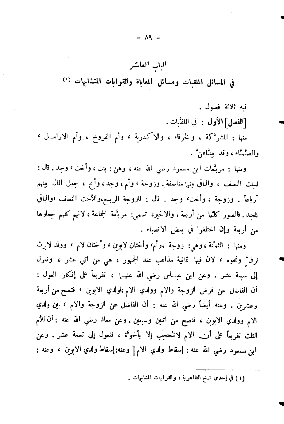الْبَابُ الْعَاشِرُ فِي الْمَسَائِلِ الْمُلَقَّبَاتِ وَمَسَائِلِ الْمُعَايَاةِ وَالْقَرَابَاتِ الْمُتَشَابِهَاتِ