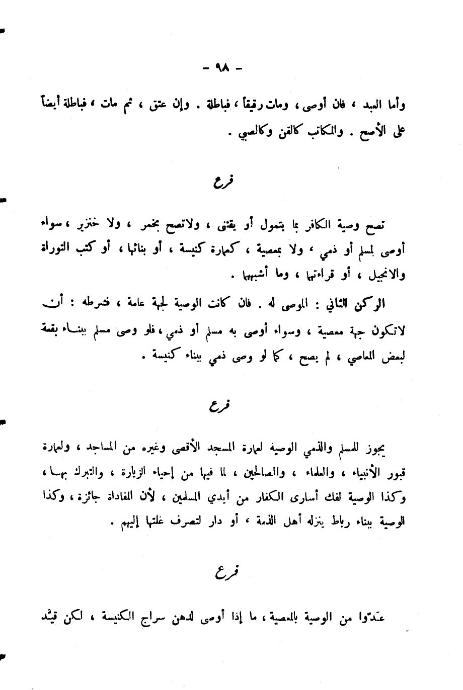 عَدُّوا مِنَ الْوَصِيَّةِ بِالْمَعْصِيَةِ، مَا إِذَا أَوْصَى لِدَهْنِ سِرَاجِ الْكَنِيسَةِ، لَكِنْ قَيَّدَ