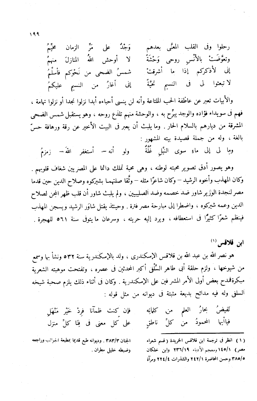 أما عالم قومه أو بعبارة أخرى عالم الإنسان فما أضيق ساحاته، وإنه ليفر منه منطويا على نفسه حالما بليلى وعالمها الساحر خالعا الوهم على الحقيقة ذاهلا عن كل ما حوله ذهول المجانين، ولذلك سماه القدماء مجنون ليلى. وقلة فقط هم الذين بلغ بهم الحب هذا المبلغ المغرق فى الخيال، ومع ذلك فكل محب يشعر كأن صاحبته فوق مستوى كل من حولها من الفتيات والنساء، وكأنما تحيط بها