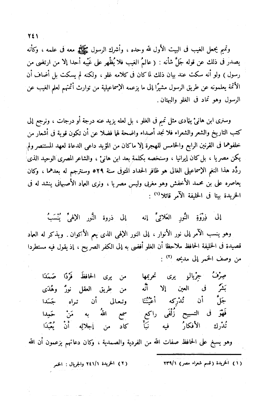 وهو يكبرها عن أن يرثيها بألفاظ، إذ هى جديرة بأن يصوغ لها النجوم الساطعة عقود رثاء تزين جدثها الطاهر، ويحس فى عمق-وهو فى سن الكهولة-كأن السنوات الطويلة التى فصلته عن صدر أمه من القصر ليست إلا أياما قصيرة إذ لا يزال يشعر كأنه رضيع فقد أمه، وهو فى حاجة شديدة إليها، رضيع ضاع أى ضياع. ويتوسل إلى قوافل المنون التى تسرى فى ليل الأبدية أن تحمل منه إلى أمه سلاما ذكيا عطرا ينتشر أريجه من حولها ويسطع سطوعا. ويقول الماهر الدمشقى المتوفى سنة 452 فى مرثية له (¬2):