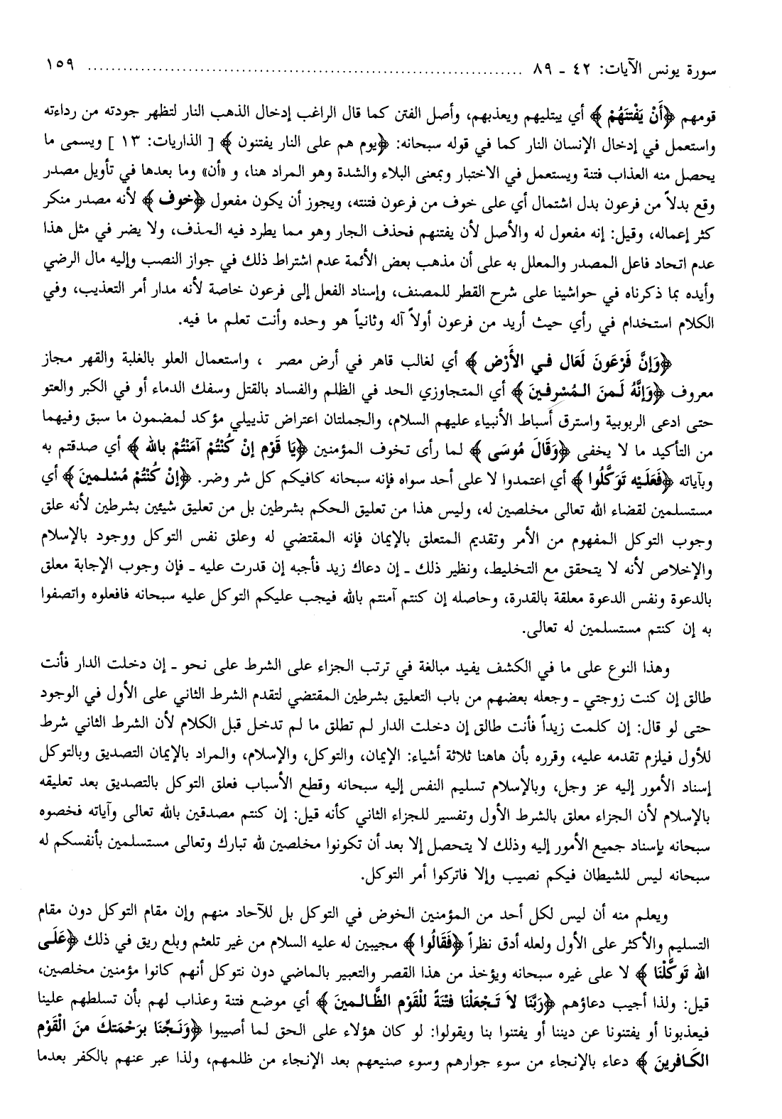 وَإِنَّ فِرْعَوْنَ لَعالٍ فِي الْأَرْضِ أي لغالب قاهر في أرض مصر، واستعمال العلو بالغلبة والقهر مجاز معروف وَإِنَّهُ لَمِنَ الْمُسْرِفِينَ أي المتجاوزي الحد في الظلم والفساد بالقتل وسفك الدماء أو في الكبر والعتو حتى ادعى الربوبية واسترق أسباط الأنبياء عليهم السلام، والجملتان اعتراض تذييلي مؤكد لمضمون ما سبق وفيهما من التأكيد ما لا يخفى وَقالَ مُوسى لما رأى تخوف المؤمنين يا قَوْمِ إِنْ كُنْتُمْ آمَنْتُمْ بِاللَّهِ أي صدقتم به وبآياته فَعَلَيْهِ تَوَكَّلُوا أي اعتمدوا لا على أحد سواه فإنه سبحانه كافيكم كل شر وضر. إِنْ كُنْتُمْ مُسْلِمِينَ أي مستسلمين لقضاء الله تعالى مخلصين له، وليس هذا من تعليق الحكم بشرطين بل من تعليق شيئين بشرطين لأنه علق وجوب التوكل المفهوم من الأمر وتقديم المتعلق بالإيمان فإنه المقتضي له وعلق نفس التوكل ووجود بالإسلام والإخلاص لأنه لا يتحقق مع التخليط، ونظير ذلك- إن دعاك زيد فأجبه إن قدرت عليه- فإن وجوب الإجابة معلق بالدعوة ونفس الدعوة معلقة بالقدرة، وحاصله إن كنتم آمنتم بالله فيجب عليكم التوكل عليه سبحانه فافعلوه واتصفوا به إن كنتم مستسلمين له تعالى.